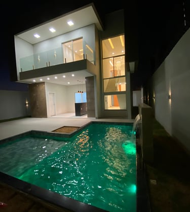 Casa executada e incorporada no bairro Paraviana em Boa Vista/RR. Com fitas de Led que caracterizam a arquitetura moderna e fazem a casa brilhar aos olhos.
